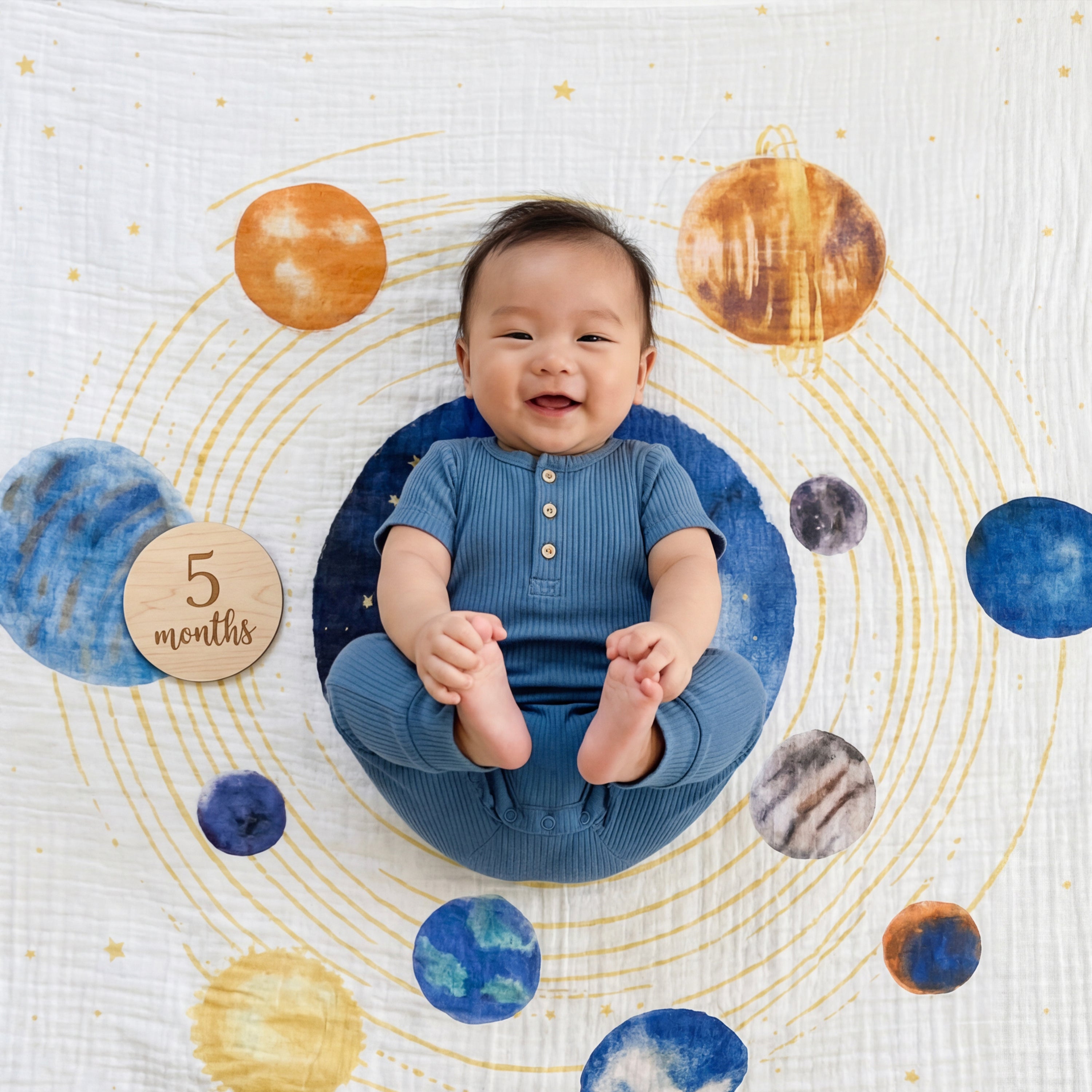 The aden + anais organic cotton muslin dream blanket, with soft white fabric and colorful space-themed prints, is a charming addition to your crib bedding collection.