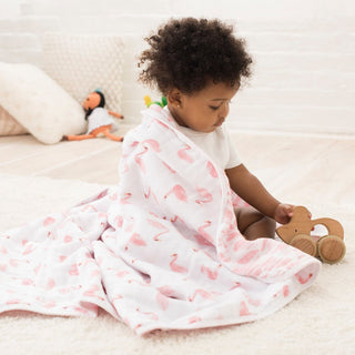Made from high-quality cotton, aden + anais muslin blankets encourage a peaceful night's sleep. Baby muslin blankets are breathable, lightweight, durable, and can easily be used well beyond your baby's early years as a place for them to sit during playtime, keeping them company during long car rides, or they can be kept as a beloved family keepsake. All aden + anais muslin blankets are available in a variety of colors and hand-drawn designs to complement your baby's nursery.