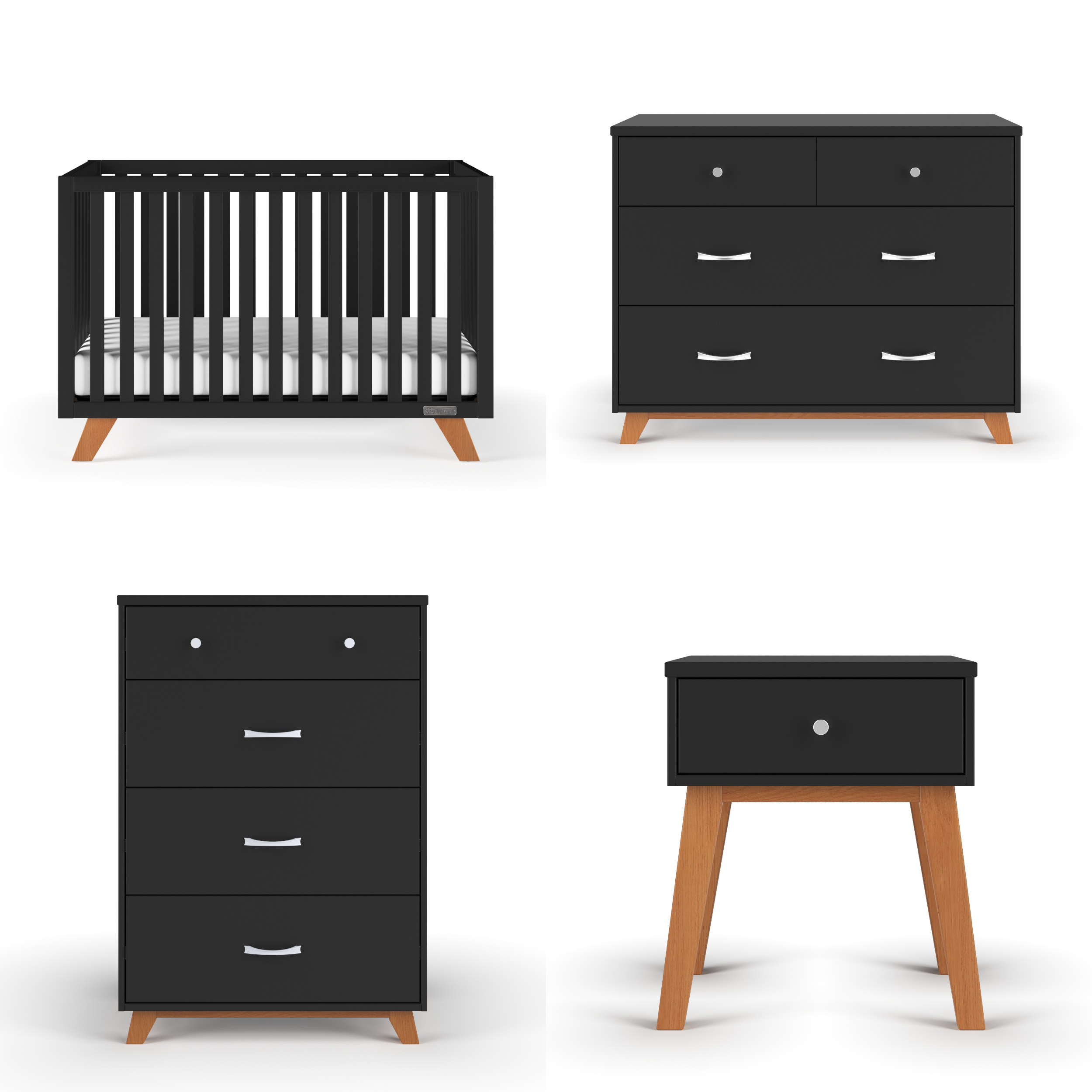 Add a mid-century modern flair to your baby’s nursery with the Soho 4PC Set. This contemporary nursery set features clean lines and minimalist design. The canted legs add to the modern simplicity. 3 sophisticated finishes highlight the set's unique features. Pair with coordinating pieces from the Child Craft Soho nursery furniture collection to complete your child’s bedroom.
