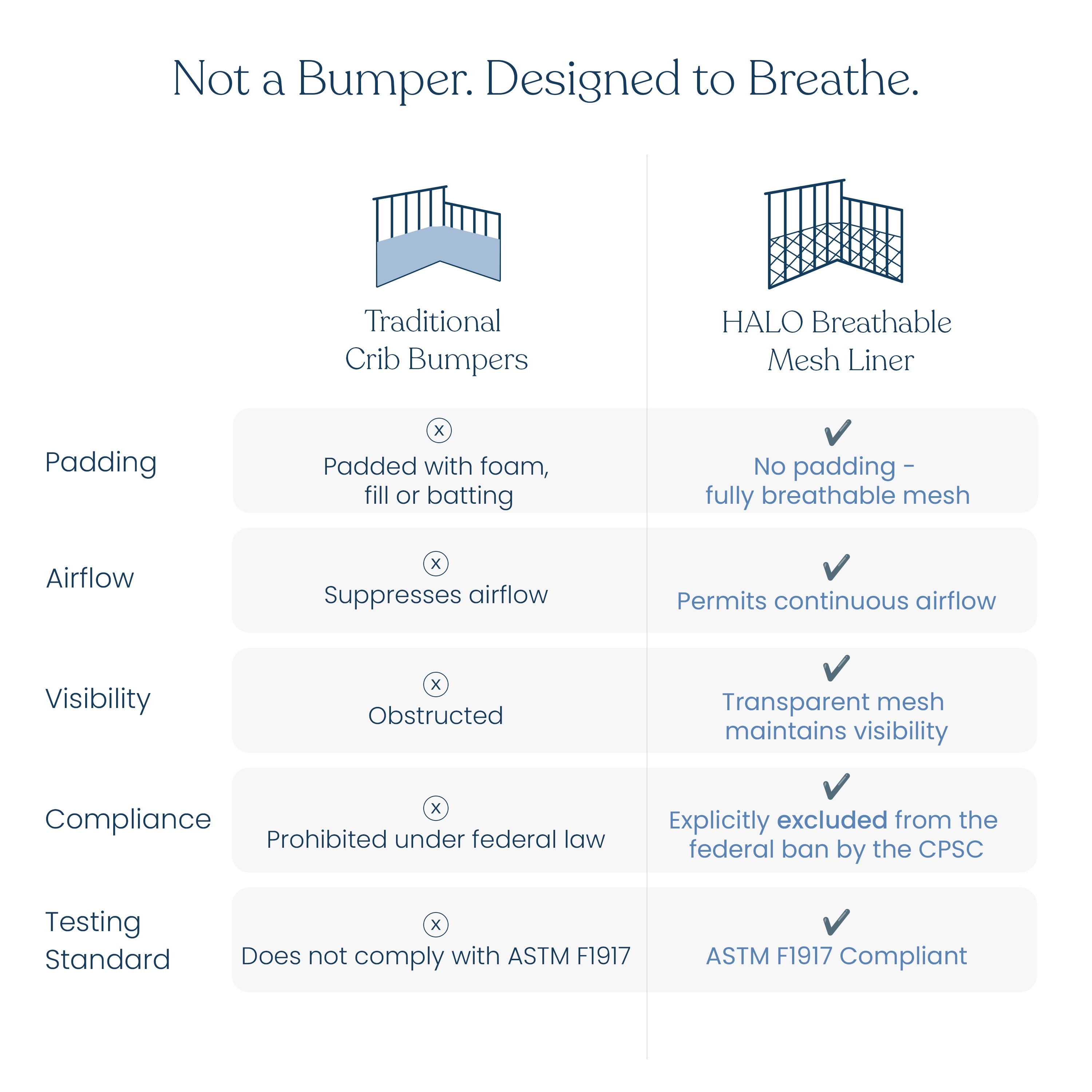Designed to keep tiny limbs and pacifiers inside the crib without blocking airflow.
