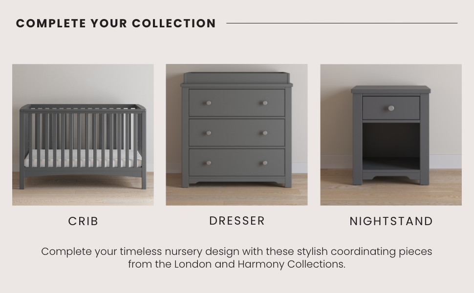 The Child Craft Harmony Nightstand in Cool Gray offers child-safe finishes, a single drawer, and an open shelf for practical storage, complementing light wood floors and beige walls with its modern design.