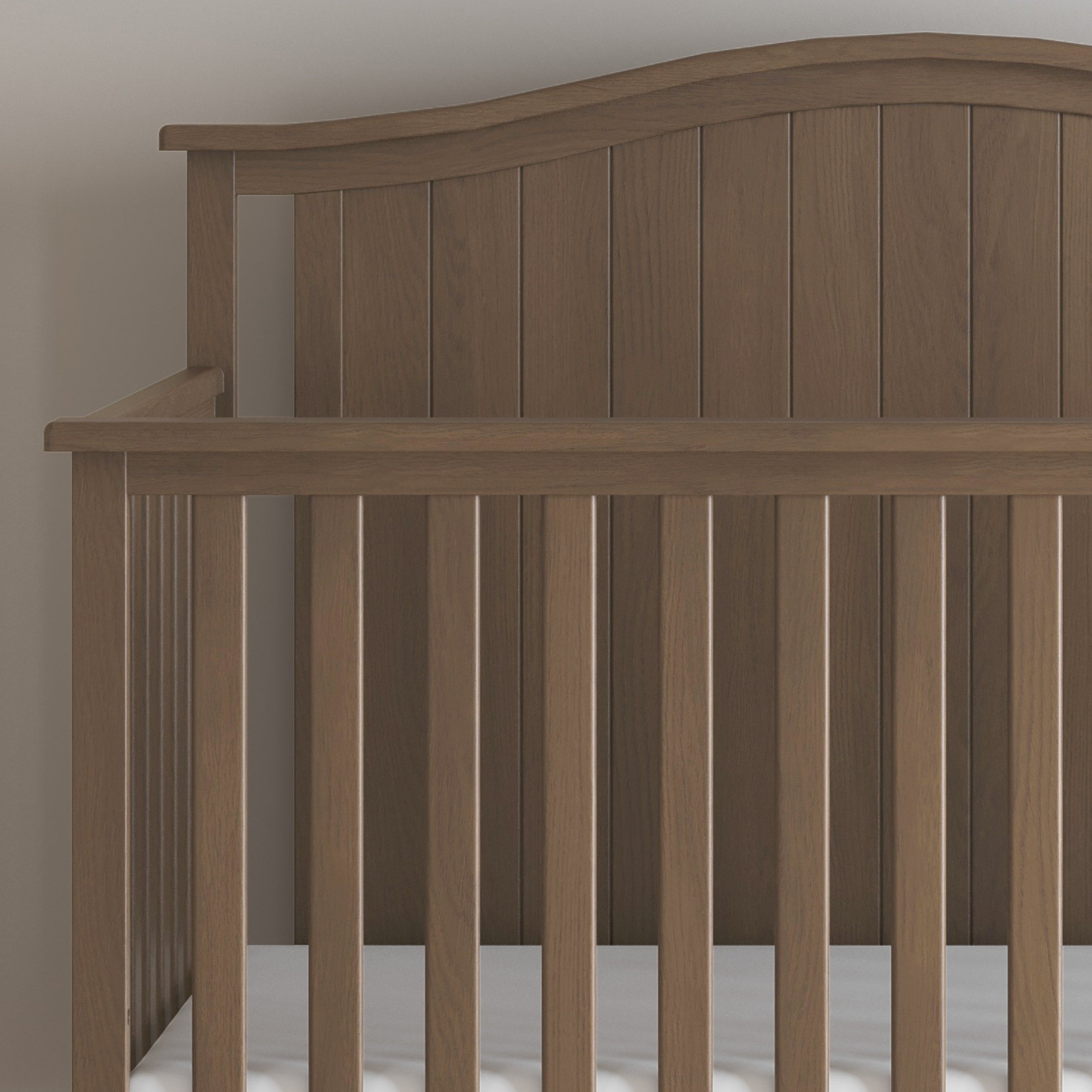 The Hampton™ collection offers a charming, timeless design that comes in 3 trendy neutral finishes. This collection is also available in 3 unique patterns to match your individual style and complement most decors as it transitions with your child as they grow. Crafted of strong, sturdy pine wood and veneers and features an elegant arched headboard 4-in-1 Convertible crib grows with your child by converting into a crib, daybed, toddler bed and full-size bed (coordinating guard/bed rails sold separately) Strong metal mattress support adjusts to 3 positions to accommodate the growing needs of your child Fits most standard size crib matttress (sold separately) Available in Matte White, Dapper Gray and Dusty Heather non-toxic, safe finishes 1-year manufacturer's warranty Meets ASTM and CPSC standards Assembly required