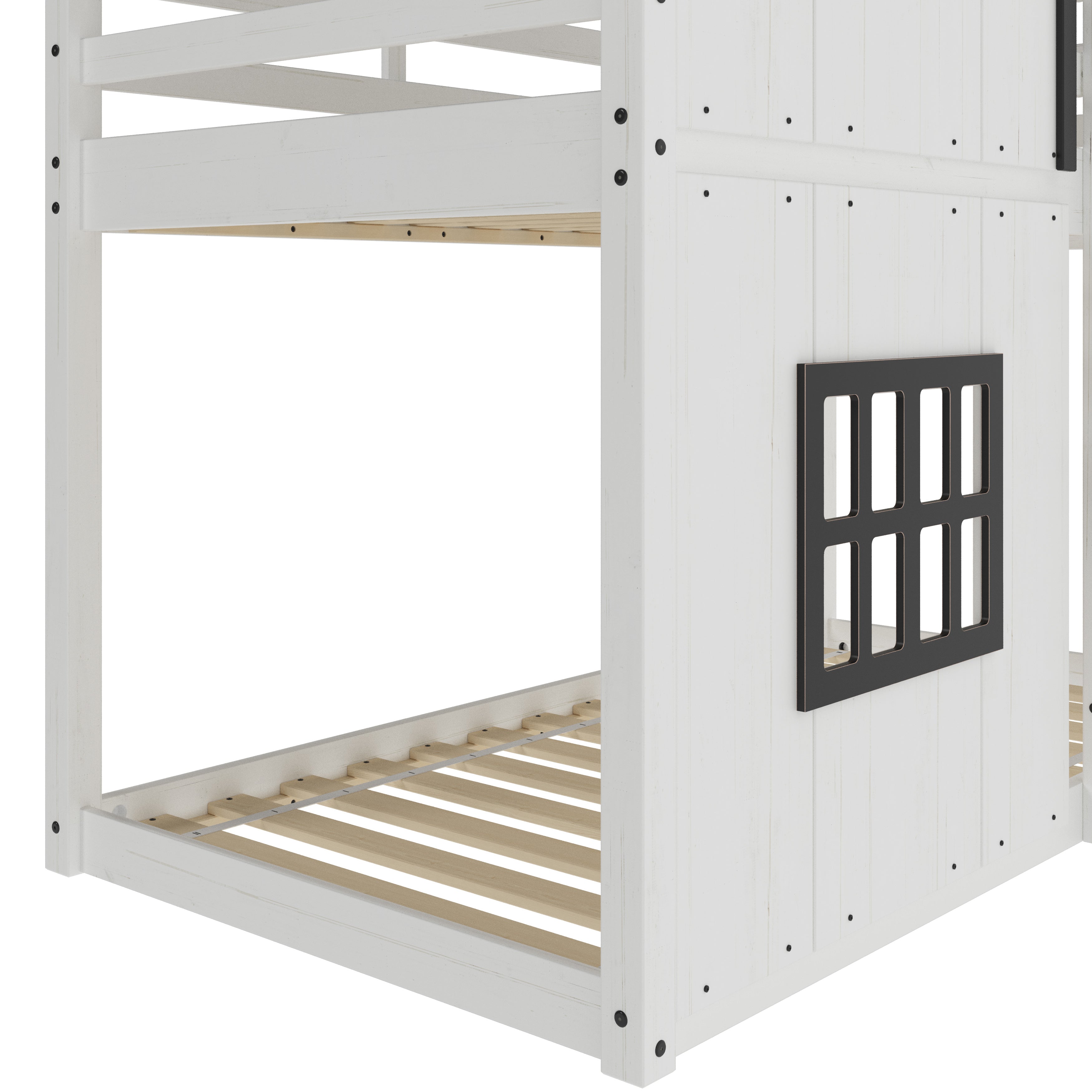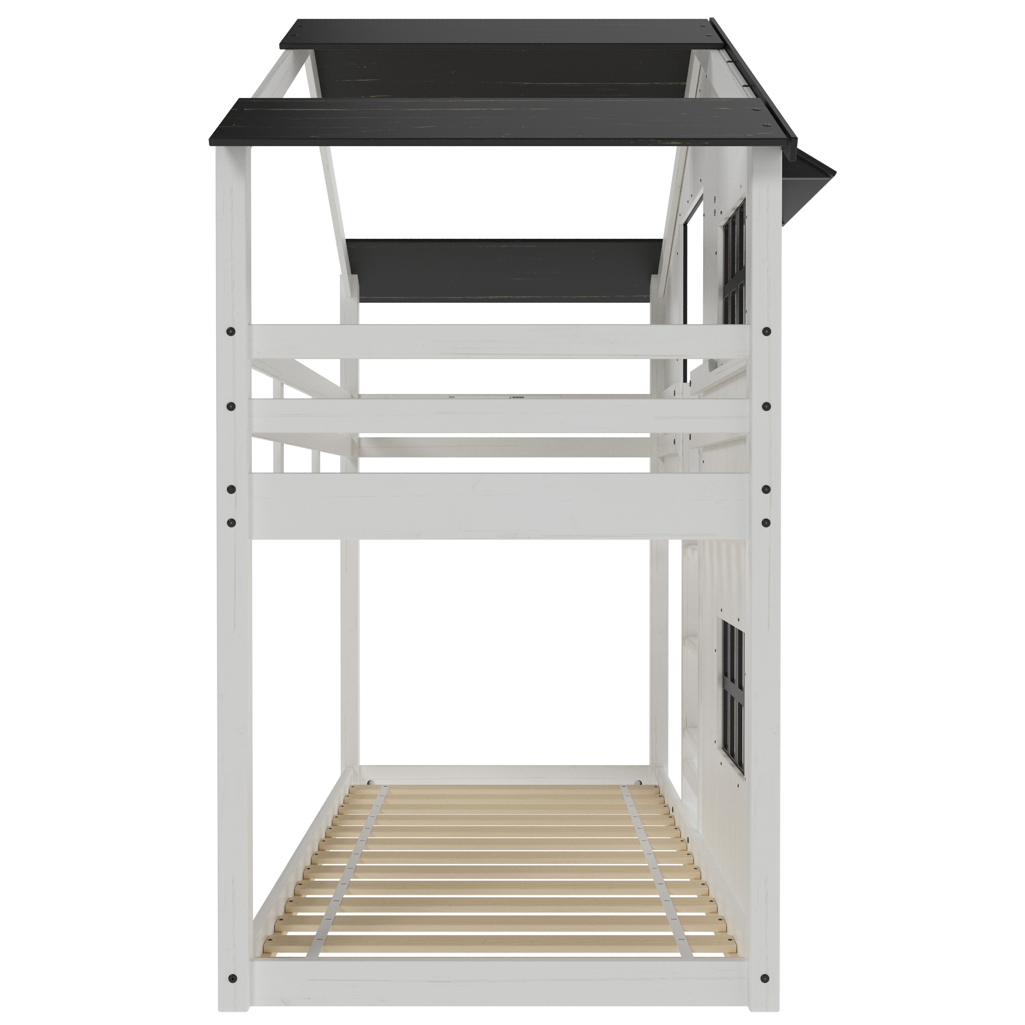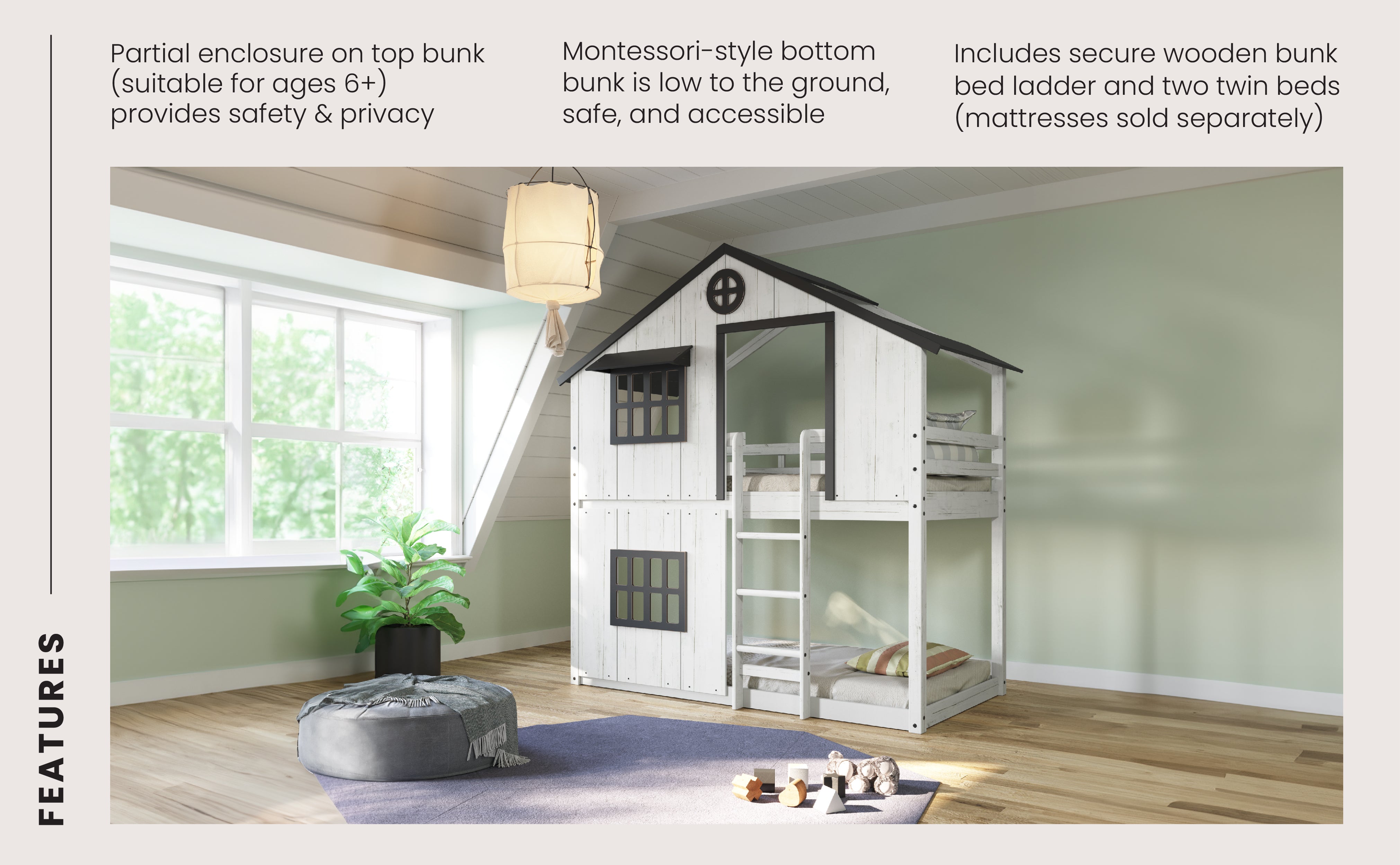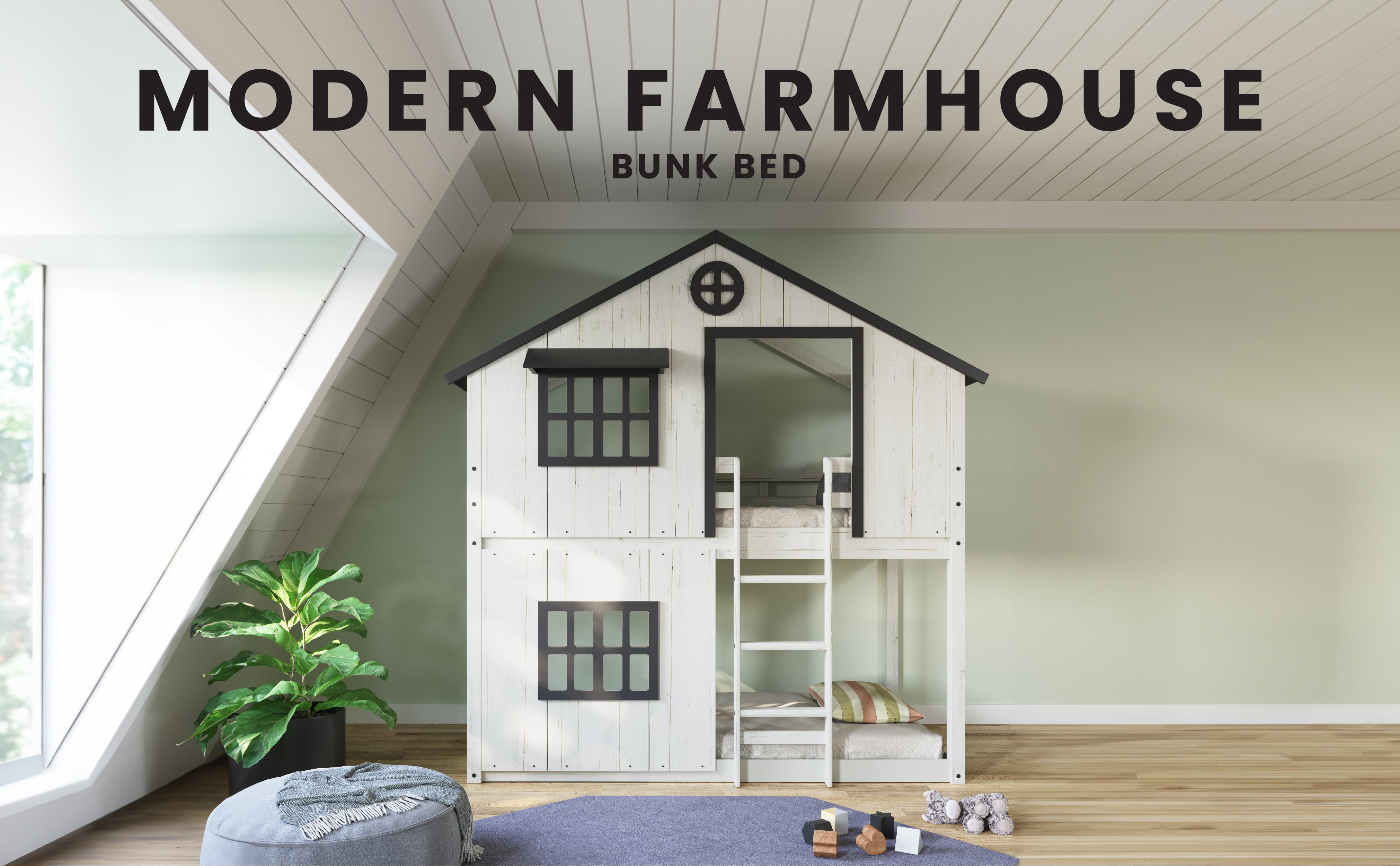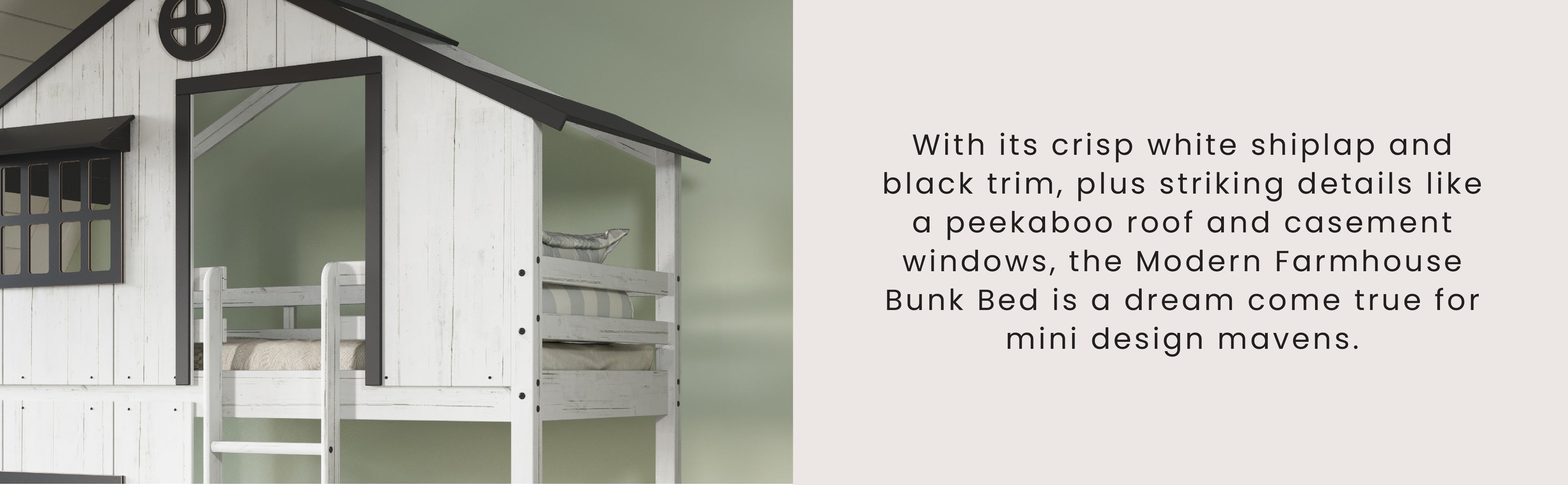 Modern Farmhouse Twin Over Twin Bunk Bed, White/Black