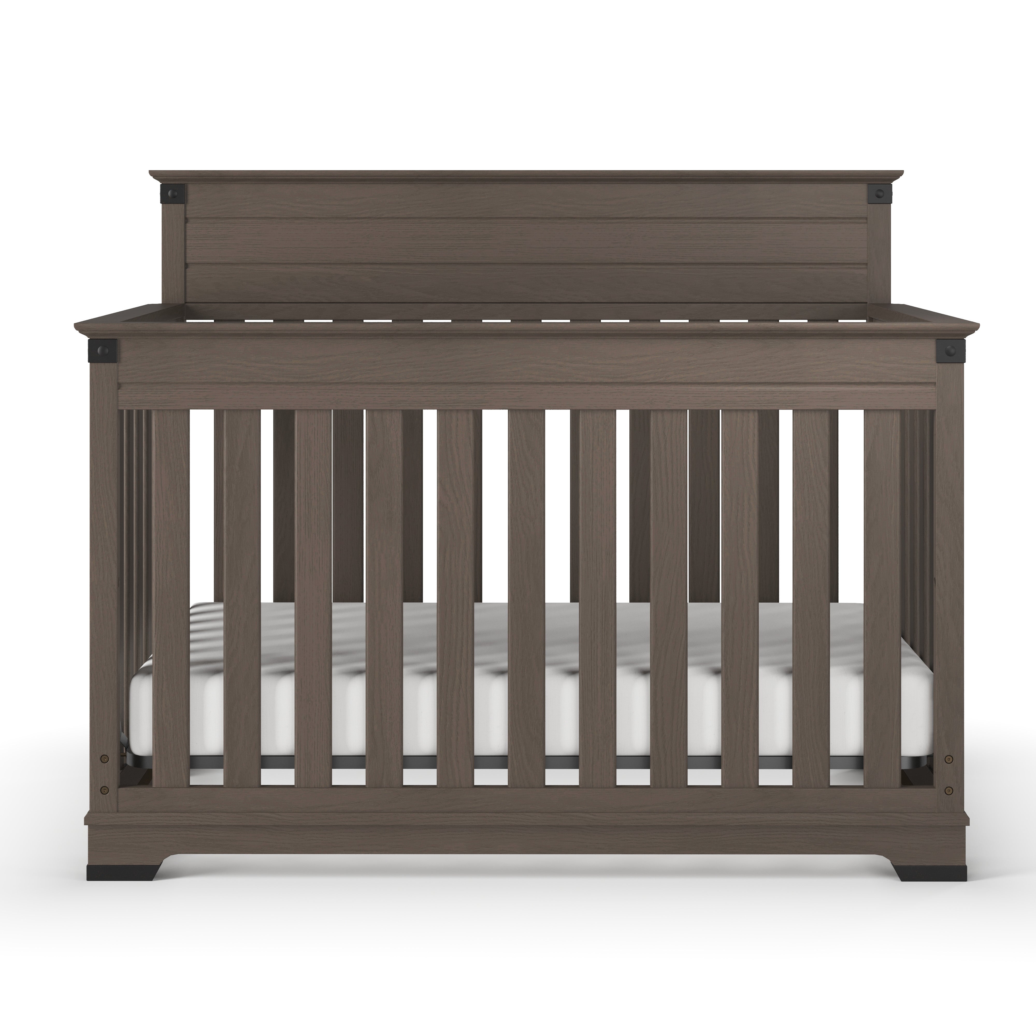 Classic lines and beautiful craftsman-era hardware combine to highlight the Redmond Collection's timeless style. Crafted of high quality materials, the Redmond 4-in-1 convertible crib will stand the test of time as it transitions with you baby from infant to toddler, teen and beyond by converting from a crib to a toddler bed, day bed, and full size bed. A strong metal mattress support adjusts to 2 height positions. Available in 2 classic finishes, the Redmond 4-in-1 convertible crib is sure to bring a level of casual sophistication to your baby’s room. Convertible crib converts from a crib to a toddler bed, day bed, and full size bed Features wrought iron style metal hardware and accents Made of pine wood and wood veneers Metal crib mattress support adjusts 2 heights Fits most standard crib mattresses, sold separately Non-toxic, baby-safe finishes Easy Assembly