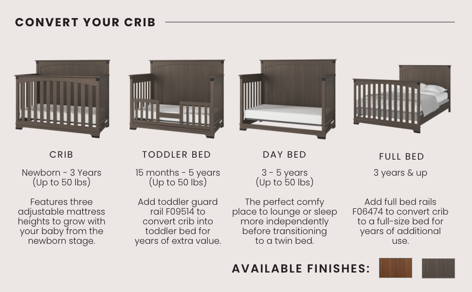Redmond Full Panel 4-in-1 Convertible Crib, Dapper Gray