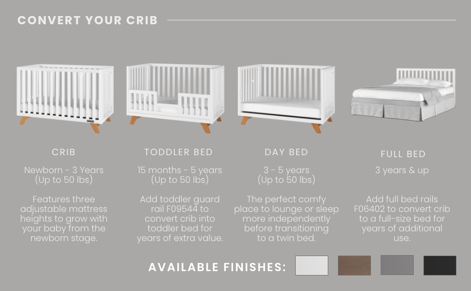 The Child Craft F09544 Toddler Guard Rail in Matte White features vertical slats, a center opening, and non-toxic finishes. Designed for crib conversion kits, it helps prevent falls while allowing easy access for your toddler.