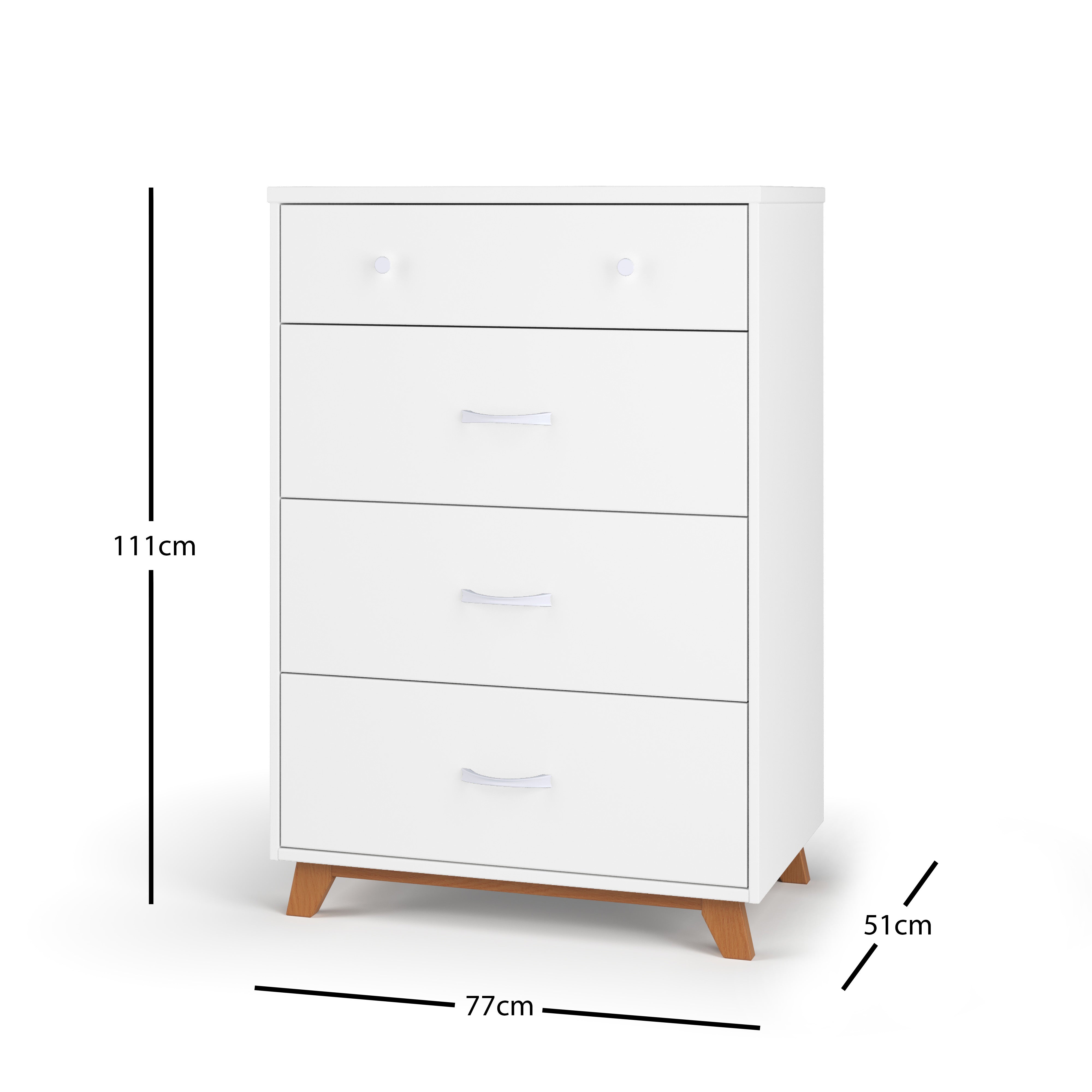 Bring a touch of mid-century modern styling to your baby's nursery with the Soho 4 Drawer Chest. This nursery chest features a minimalist design with clean ...