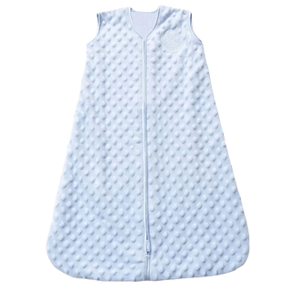 The HALO SwaddleStretch™ Newborn Swaddle TOG 0.5 features a center zipper, wide sleeves, and a roomy bottom. Made from soft fabric, this hip-healthy sleep sack ensures cozy comfort and warmth for infants.