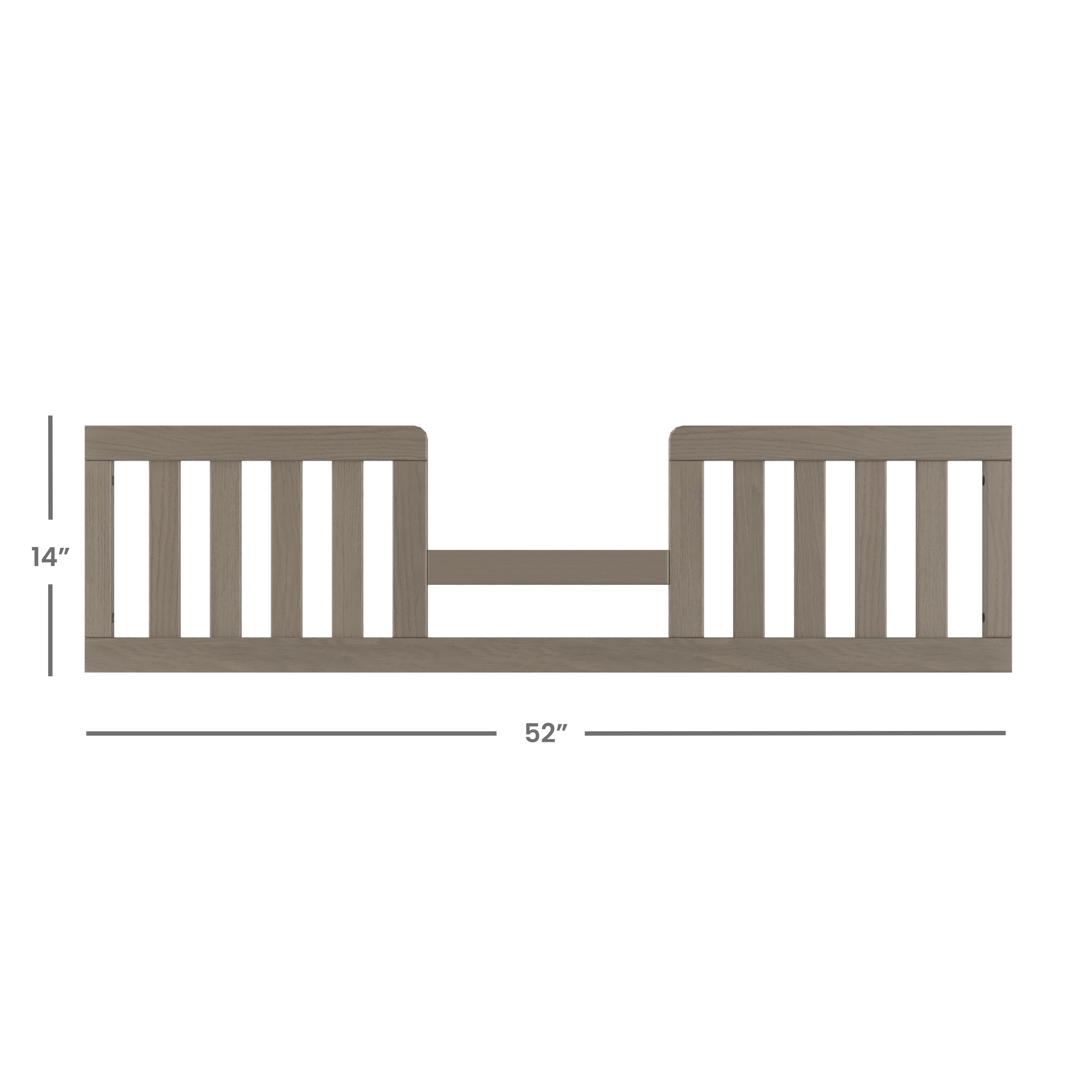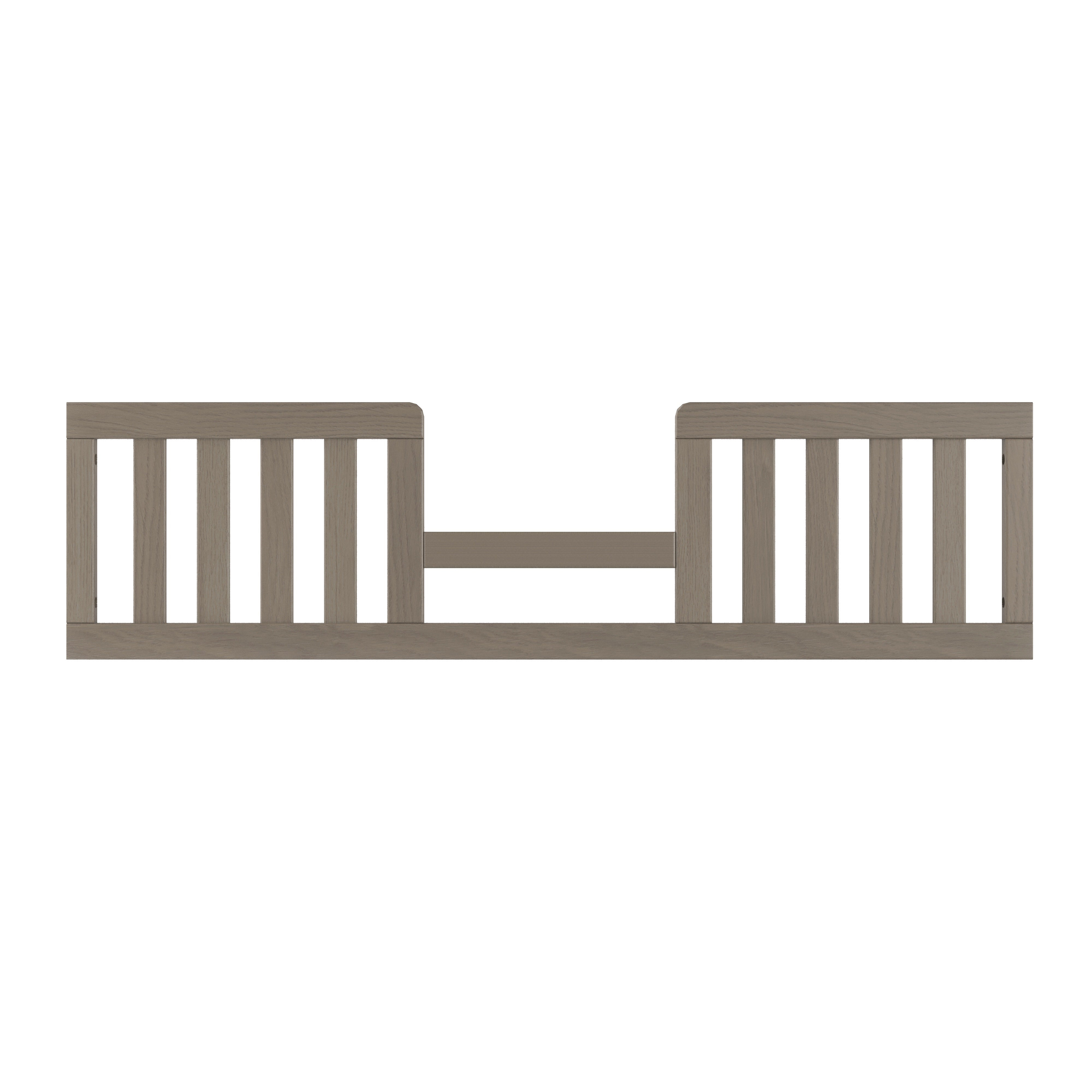 Straight-on view of the Child Craft Toddler Guard Rail in Crescent Grey, designed with vertical slats to securely fit along a child's bed side and provide added safety.