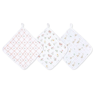 Our soft, absorbent baby washcloths come in 3-packs and three styles—essentials, oversized boutique, and oversized organic—perfect for bathtime, wipe-downs, and everyday messes.