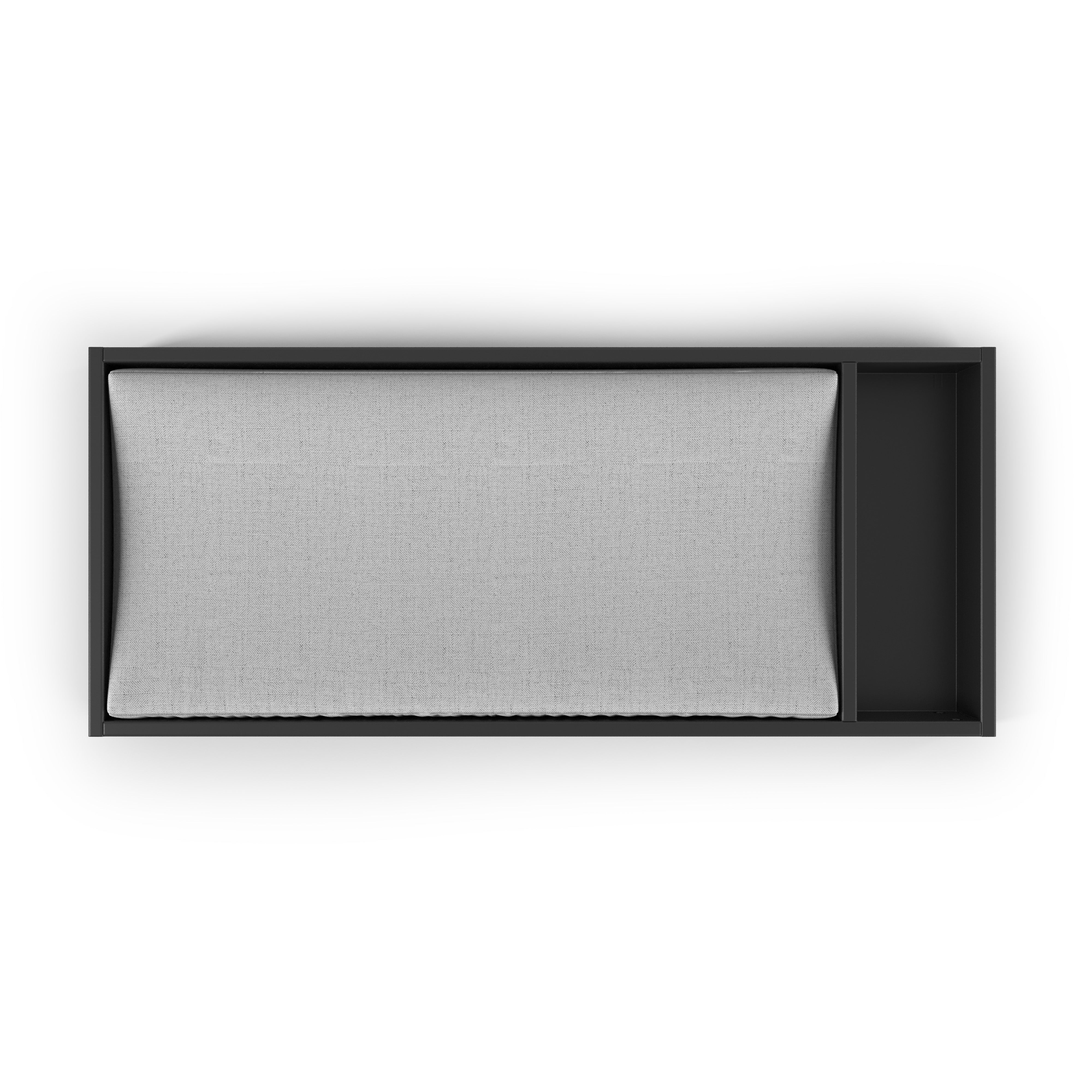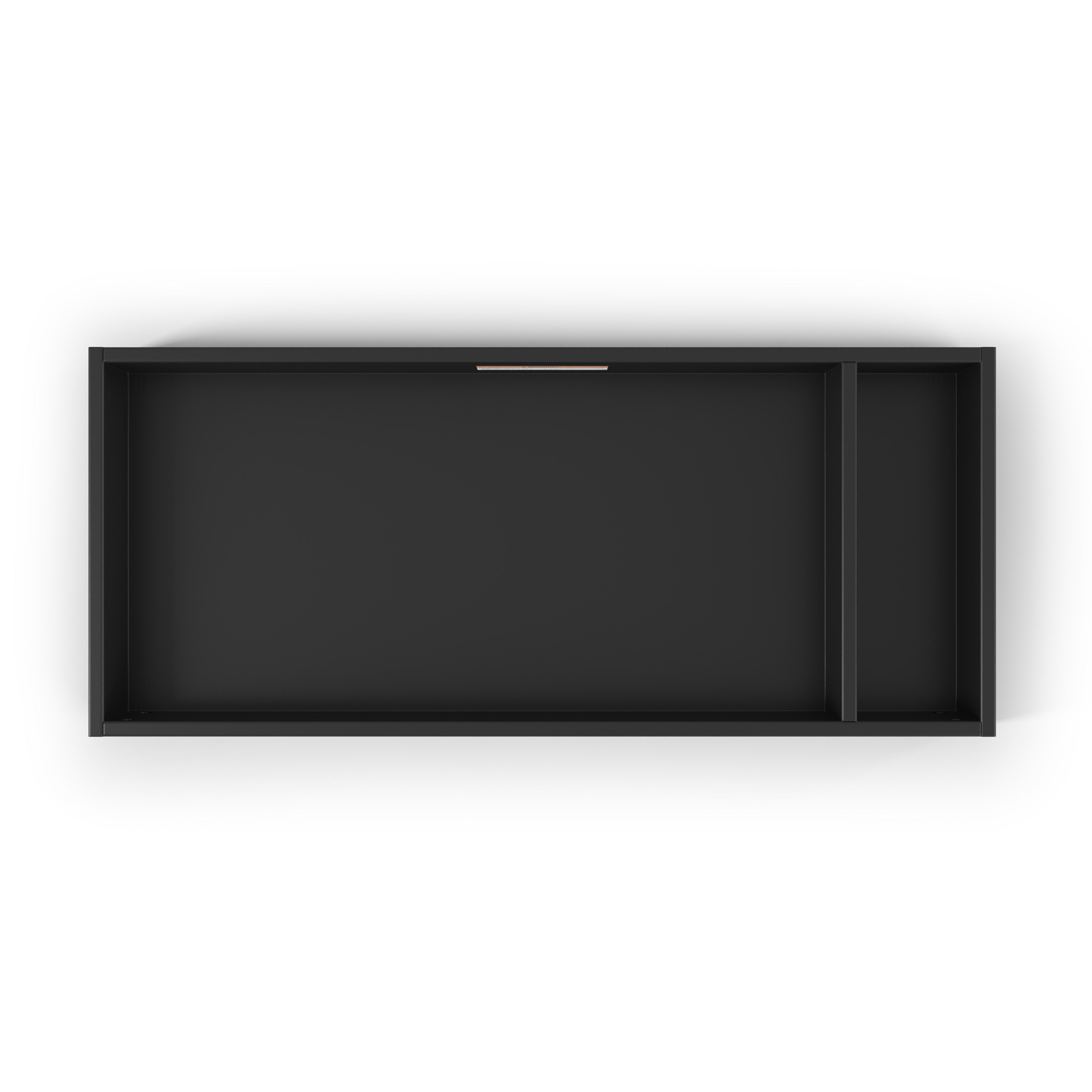 The Child Craft Legacy Changing Table Topper in Caviar Black is a low-profile, rectangular tray with an open top and a divider for two compartments, shown on a white background.