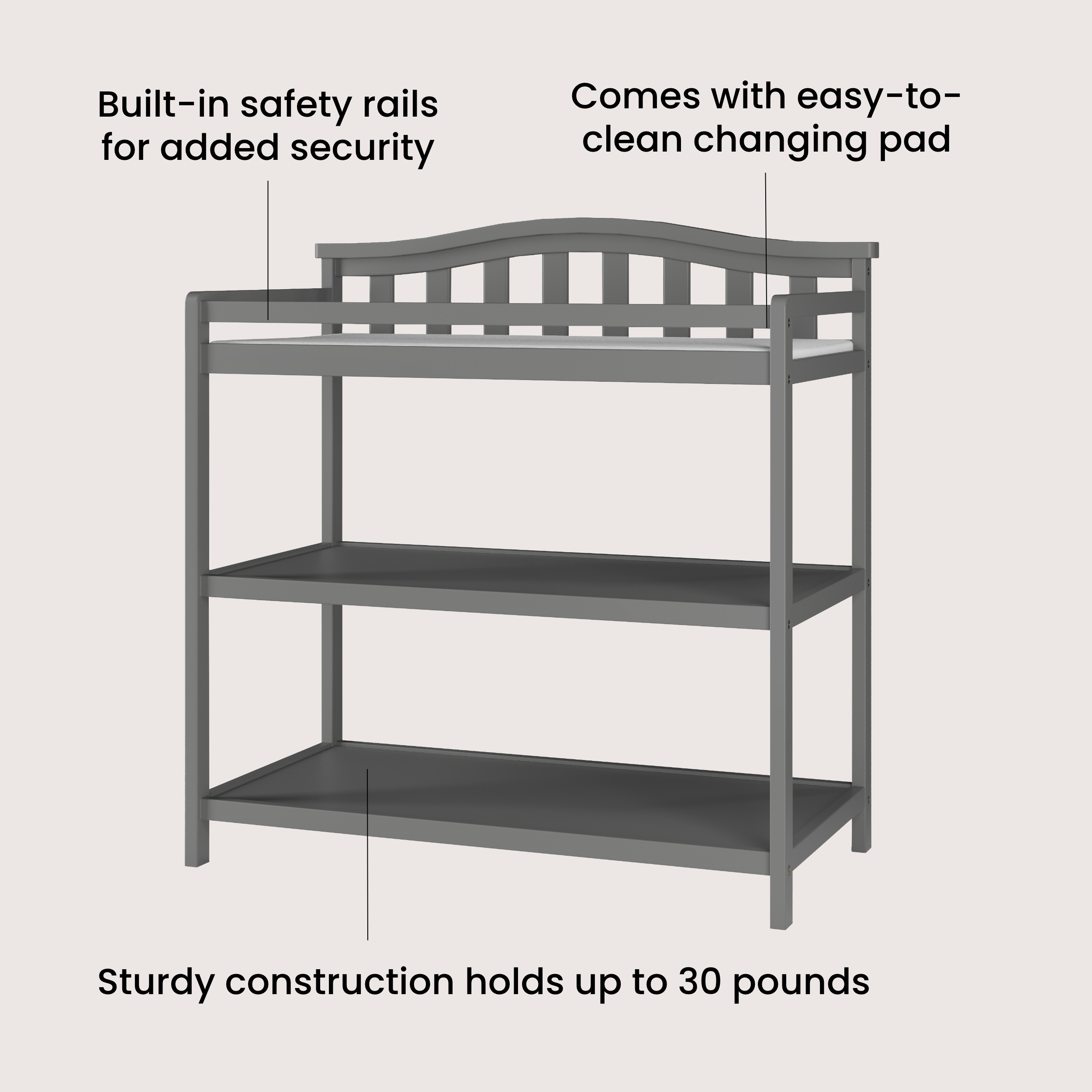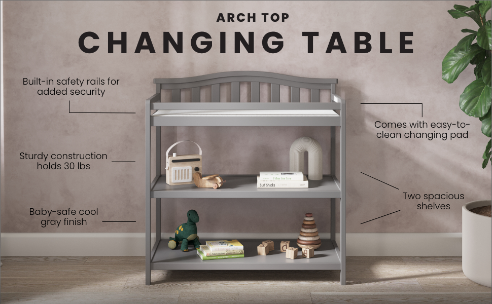 Arch Top Baby Changing Table, Cool Gray