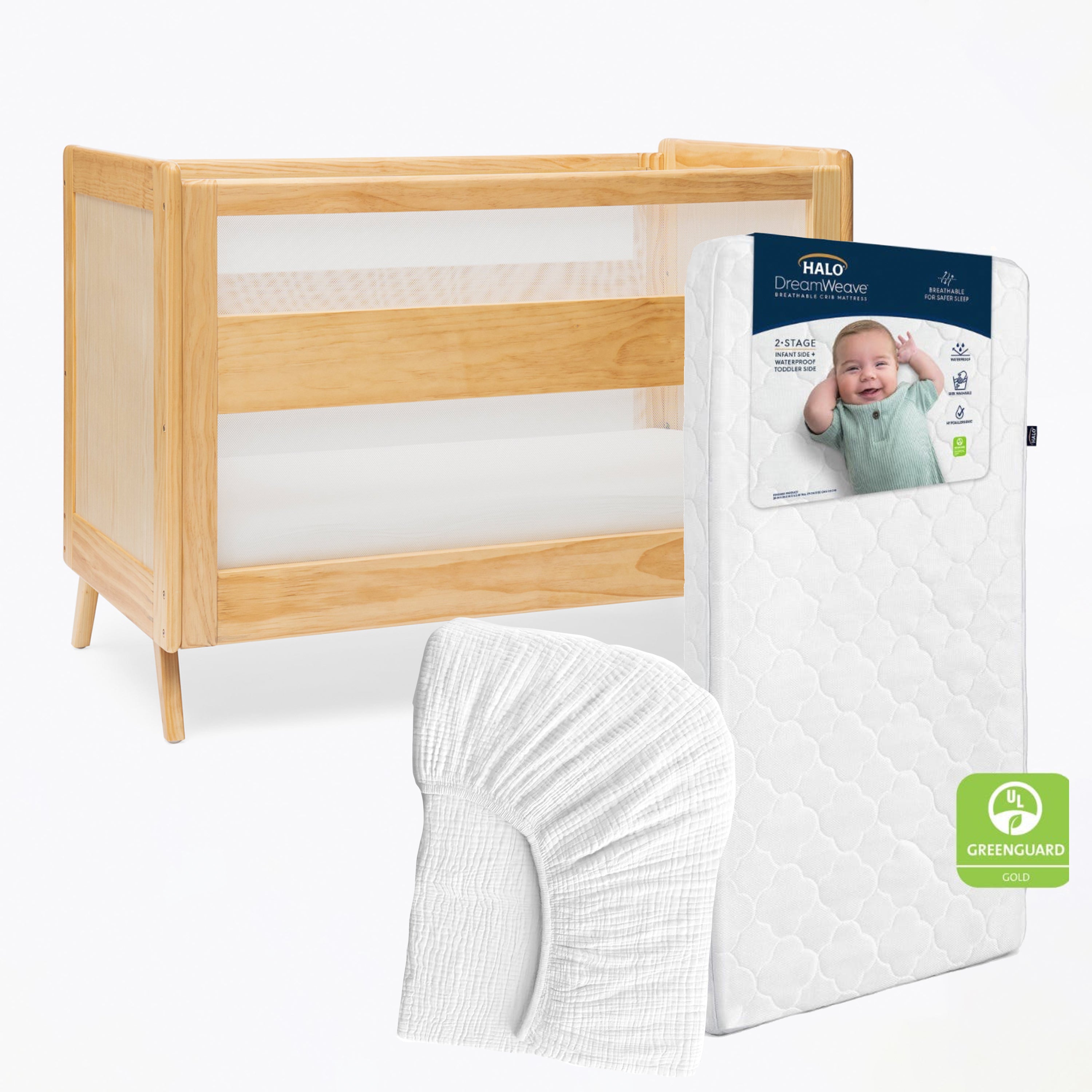 The Breathable Mesh Full-Size Crib promotes airflow while eliminating stuck limbs and dropped pacifiers. Paired with the Breathable DreamWeave Crib Mattress, which offers superior breathability and is fully washable for easy cleaning, this bundle helps create a healthier sleep space. The aden + anais Muslin Crib Sheet adds a soft, lightweight layer, completing the perfect combination of comfort and safety.