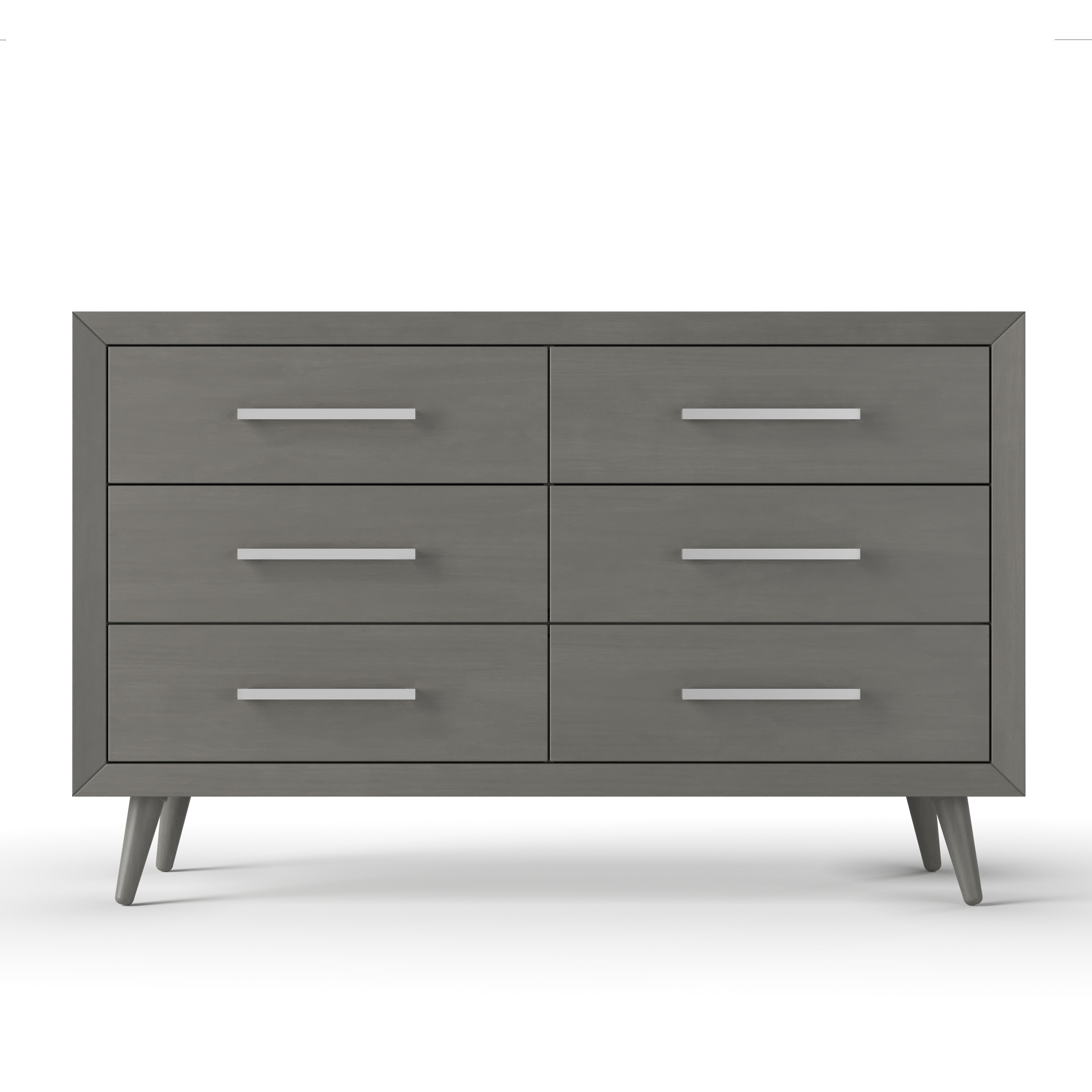 The Cranbrook Double Dresser combines functional storage and timeless style on one sleek package. Mid-Century Modern touches include mitered corners, turned legs and gracefully rounded spindles, and it comes in three elegant contemporary finishes that complement any room décor. Complete your child's bedroom by pairing it with coordinating pieces from the Child Craft Cranbrook nursery furniture collection. Six drawers with ample room for storage Mitered corners and canted, turned legs Long metal drawer pulls for a sleek look Smooth ball bearing drawer glides Includes anti-tip kit to securely fastendresser to wall and prevent tipping Pair with Changing Table Topper F01792, (sold separately) to conveniently convert dresser into a Changing Table Dresser Constructed of Pine, MDF with veneer, and plywood drawer boxes Available in three non-toxic, baby-safe finishes Easy assembly