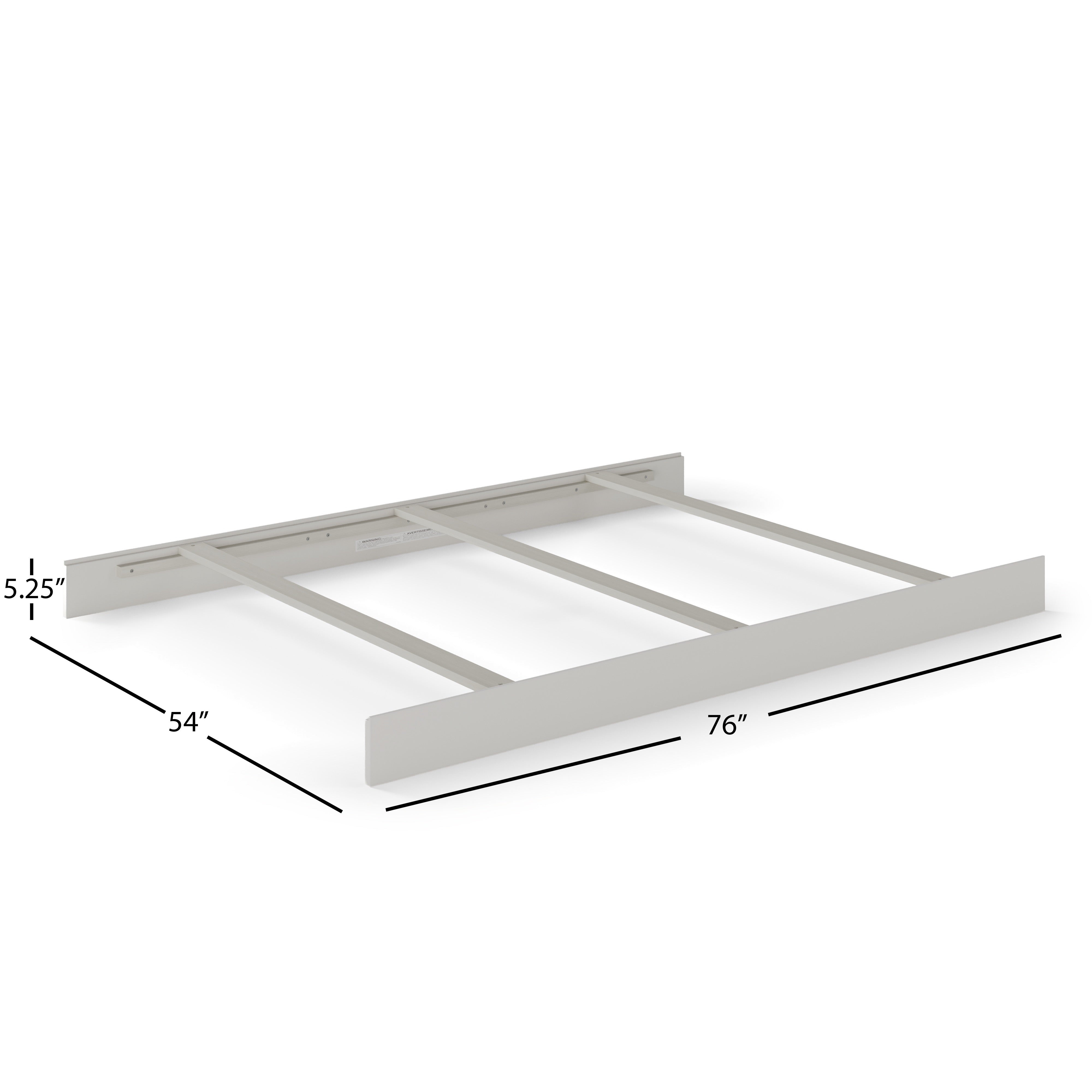 The Child Craft F06401 Full-Size Bed Rails in Gentle Gray are made from sturdy pine wood. Shown without a mattress, the rails measure 76" W x 54" D x 5.25" H and feature horizontal and vertical support slats.