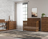 The Child Craft F09514 Toddler Guard Rail in Coach Cherry features vertical slats and an open center, attaching to the side of a crib toddler bed to enhance safety and security.