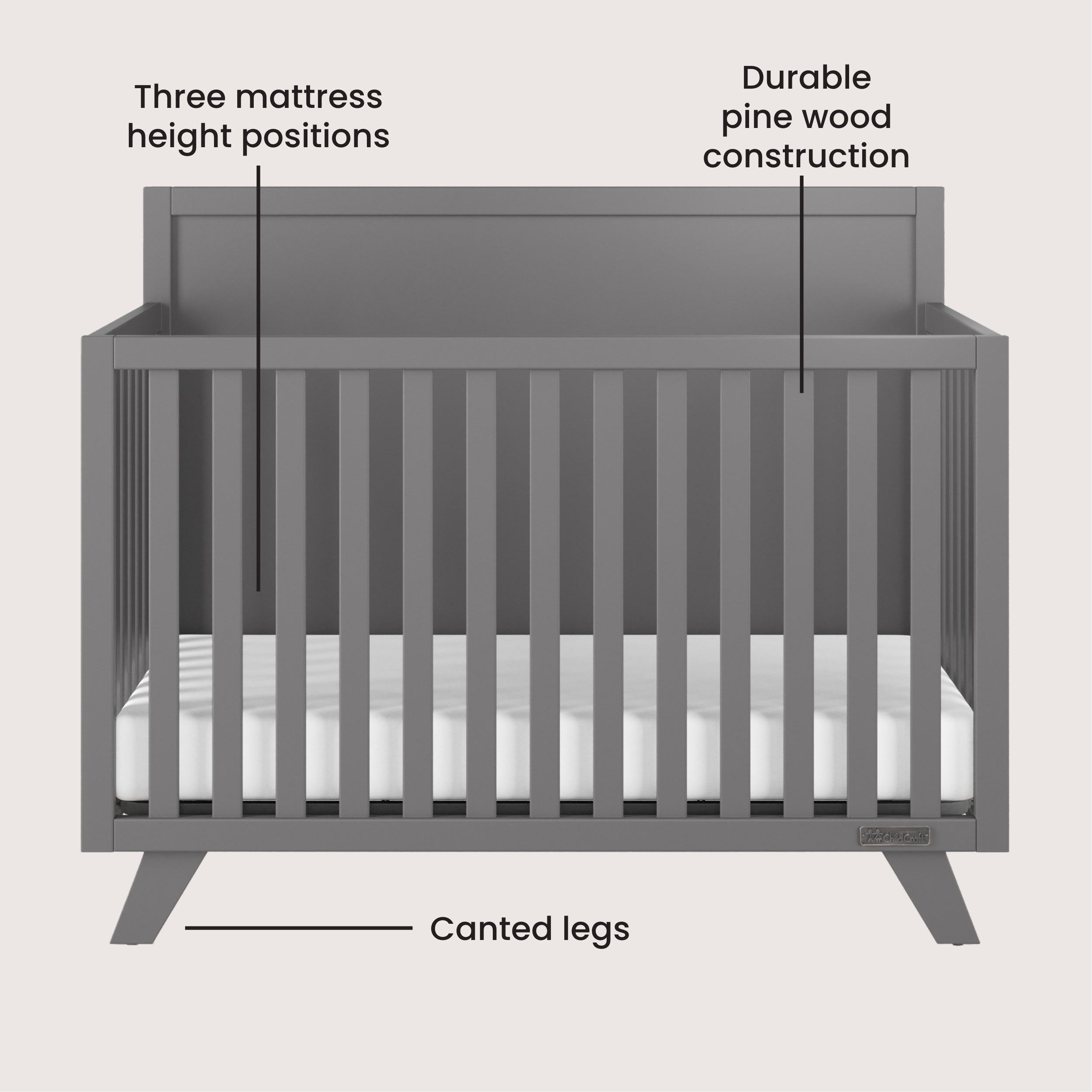 Soho 4-in-1 Flat Top Convertible Crib, Cool Gray