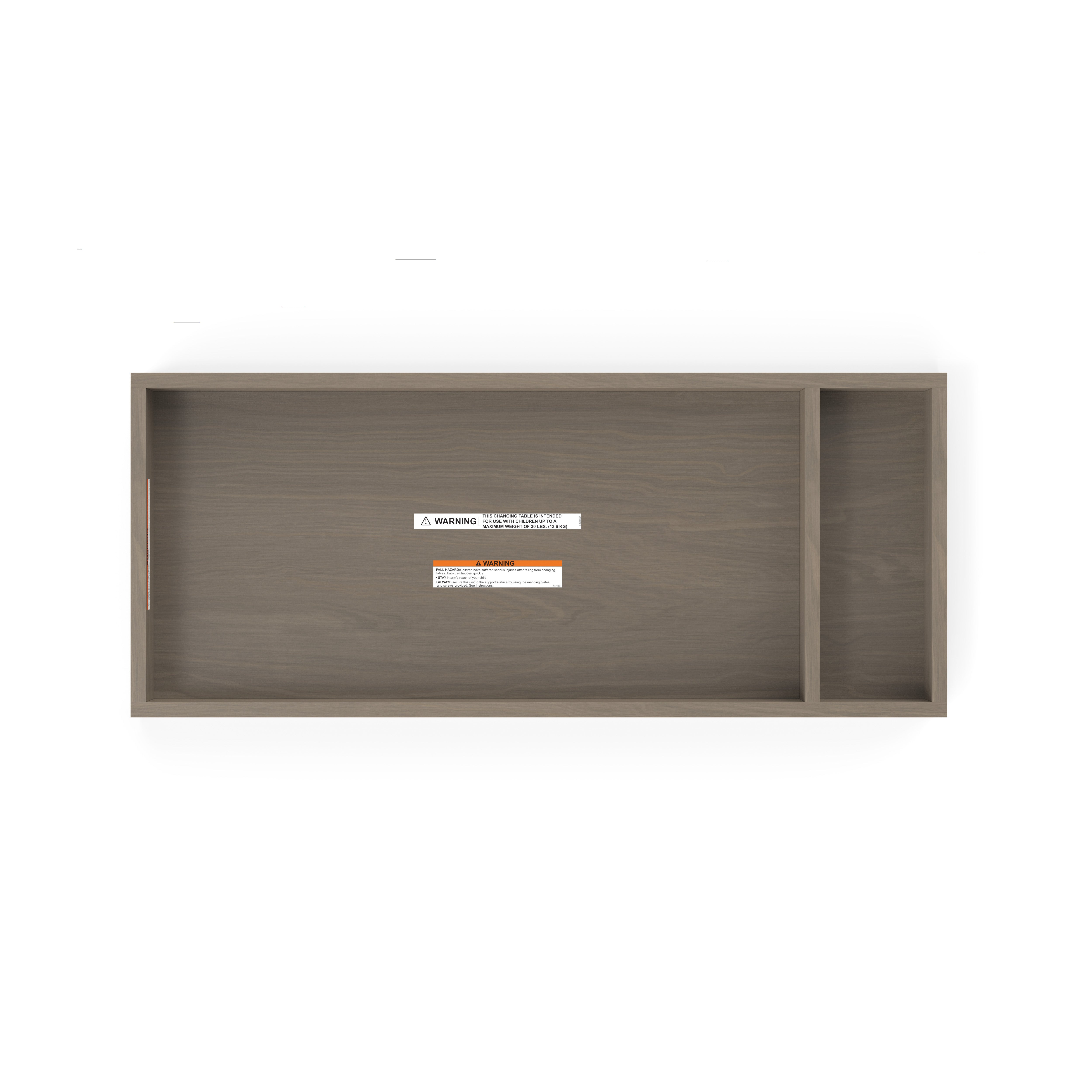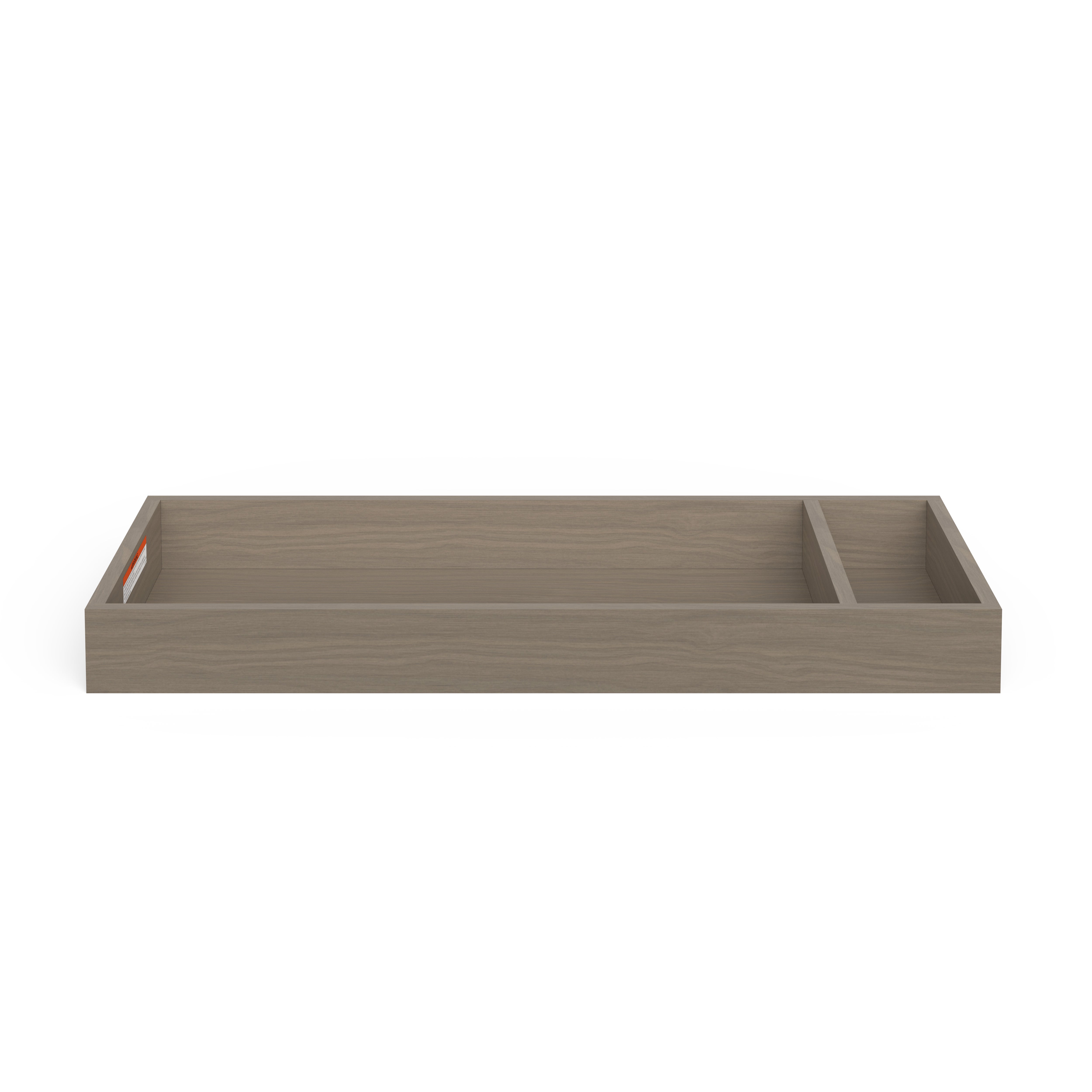 The Child Craft F01792 Universal Dressing Kit in Crescent Grey features a large and a small compartment, perfect for organizing your baby changing essentials. Ideal as a dresser topper. Shown on a white background.